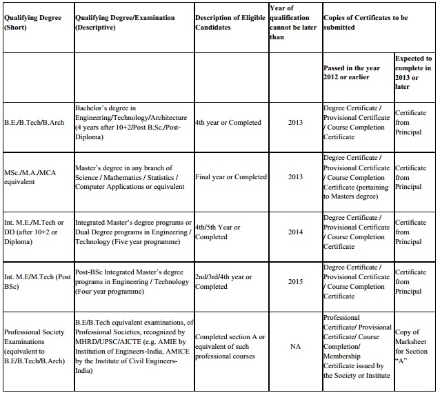 GATE-GRADUATE APTITUDE TEST IN ENGINEERING. For this exam you have to complete your 4 years enginering graduation cource from recognized university.The exam wbs conducted every year but tie exam date alreay published.The last date for exam is 30 sep.For this exam you have to fill applicat¨Ĵon form.There is no ristrictions for this exam. |