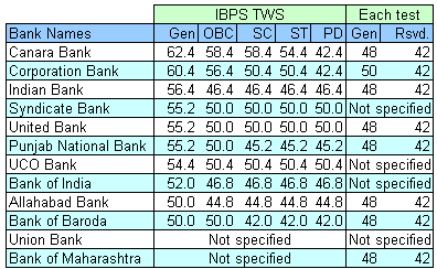 ![]() Hai, IBPS stands for Institute of Banking and Personnel Selection. **This Examination is IBPS Conducts Common Written Examination . This Examination is held every Once in a year . *The candidate should be passed in matriculation with 60% marks form any recoginzed board. *The student should be minimum 18 to 28 years. *Bachelor Degree in any discipline from a recognized university candidates also eligible for this exam. ![]() Participating IBPS clerk exam: ![]() Cutoff marks for banks: ![]() regards.......santhosh......... all the best..... |