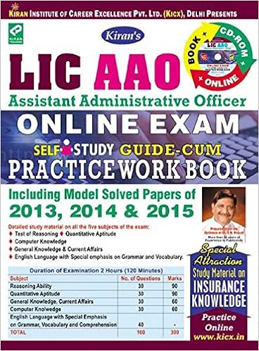Exact dates of LIC AAO recruitment are not yet released and I am providing you approximate dates of this recruitment. So that, you will some idea on when to be alert for getting latest information about this recruitment. The detailed examination pattern of LIC AAO 2017-18 is as follows, >> Total Marks of exam - 300 Marks >> Duration of the exam - 2 hours * Numerical ability - 30 questions - 90 Marks * English - 40 * GK - 30 questions - 90 Marks * Reasoning - 30 questions - 90 Marks * Computer Knowledge - 30 questions - 90 Marks >> Negative Marking - 0.25 Mark Questions will be asked from Reasoning Ability, General Knowledge, Current Affairs, Quantitative Aptitude, English Language and Current Affairs sections. Generally there is no certain syllabus for appearing in LIC AAO Examination. But there are some of the major and important topics that are to be followed strictly in order to score well and questions will be on the above mentioned sections only. You'll find the detailed syllabus for LIC AAO Examination in the book that is provided below, >> LIC AAO Online Exam Guide-cum-Practice Work Book-English by Think Tank of Kiran Prakashan